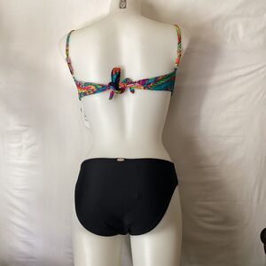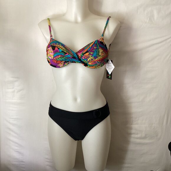 Get ready to hit the beach in style with this NWT Bikini Bay Funky Feathers U/Wire Padded Tie Back Top w/belted bottom.
