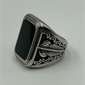 #MensRing #BlackStone #StainlessSteel #MensJewelry #GiftForHim #SignetRing #StatementRing #Hypoallergenic #MensAccessories #NWT