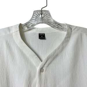 2/$15 Banded Collar Button Front Short Sleeve Textured Shirt M (2708)