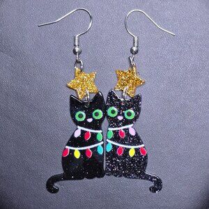 2/$15 Black Cat Earrings With Christmas Lights (NWOT)