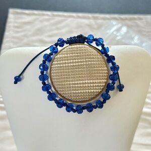 2/$15 Blue adjustable cord bracelet w/Royal blue faceted crystal beads. Adjusts from 6” to 11” long. Excellent condition.