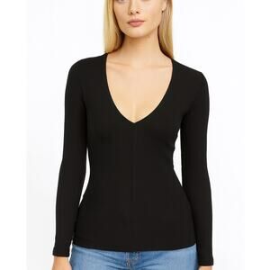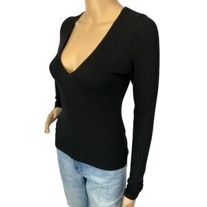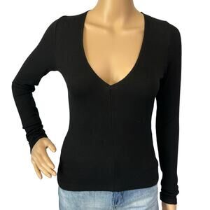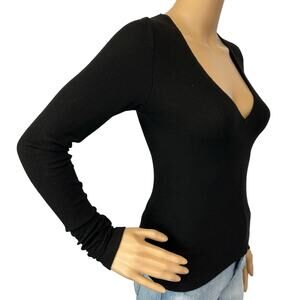 2/$15 Brandy Melville Ribbed V-Neck Long Sleeve Top Black Long Sleeve One Size
