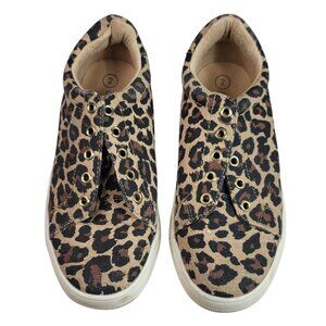 2/$15 Cat & Jack Animal Print Sneakers Brown Size 2 Leopard Cheetah No Laces
