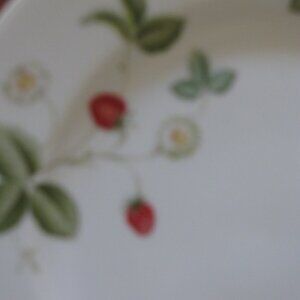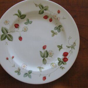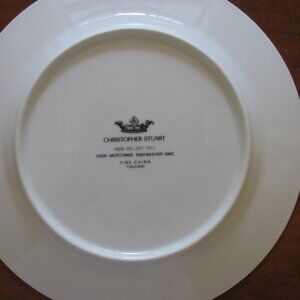 Lot of 2 Christopher Stuart Melody Hill salad dessert plates. Each plate measures 8 1/4" across. Round plate in white with pretty strawberry and flower pattern.