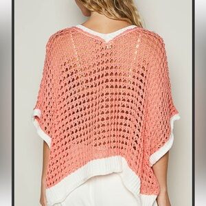 # 215 🧡Coral Open Knit Crochet Top with Floral Design