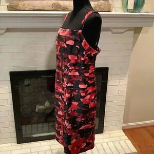 #215 Dress barn Woman Red Layered Dress Size 18. Beautiful red and black layered fabric ruffles. Pit to pit is 24" and 34" pit to bottom