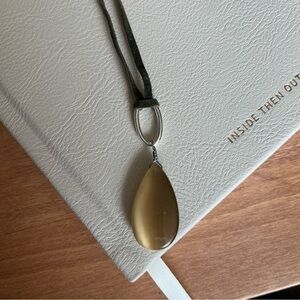 Gorgeous tan acrylic gem with leather strap and clasp closure. Please see photo for measurements. Excellent used condition.