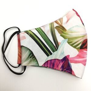 1/$10 or bundle 2/$15! Handmade 3-layer face mask (2 fabric, 1 removable filter). White pre-shrunk 100% cotton fabric w/pink, orange & green tropical plants graphic. Adult Size. Nose slot has a removable pipe cleaner for snugger fit. Includes filter pocket in back. 1 "Filti fabric" filter is included & can be inserted into pocket if desired. Remove pipe cleaner & filter before washing! 7” elastic ear loops.Masks are not medical-grade. EACH MASK LOOKS DIFFERENT BASED ON PLACEMENT ON FABRIC! #tropical #flowers #Hawaii