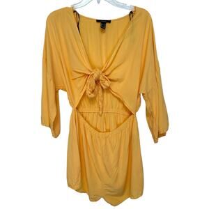 Forever 21 Tie-Front Cutout Romper, Cantaloupe Yellow, Size M.