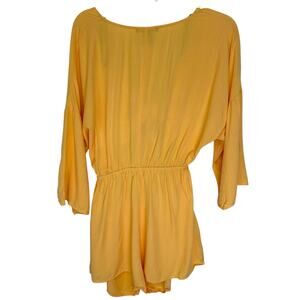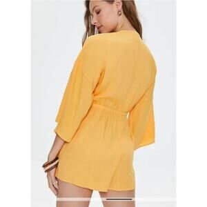 2/$15 Forever 21 Tie-Front Cutout Romper Cantaloupe Yellow Bell Sleeve Size M