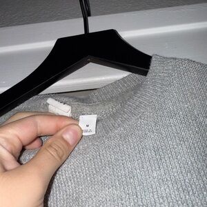 Chic heather gray sweater with a timeless crew neck. Ideal for layering. Soft knit fabric.