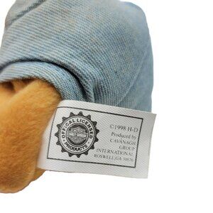 Harley Davidson brown bear bean bag plush white tank top shirt blue shorts with hang tag Evo 1998 vintage. Excellent condition with no stains or tears.