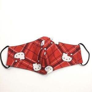 2/$15 - Hello Kitty Mask, Red Plaid Hello Kitty Face Mask, Filti Filter