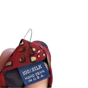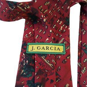 J. Garcia dark red green tan tree geo 100% silk tie. Excellent condition with no stains or tears.