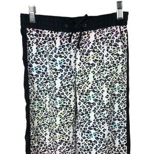 Jessica Simpson Carter cheetah print drawstring jogger pants with blue, green & pink too! Black stripe on side and at waist. Excellent pre-owned condition with no stains or tears.