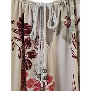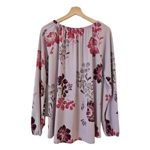 2/$15 Joan Vass Keyhole Neck Tie Lilac Floral Long Sleeve Blouse Top Size M