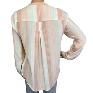 2/$15 Lucky Brand Striped Half Button Shirt Roll Tab Long Sleeve Pocket Size S