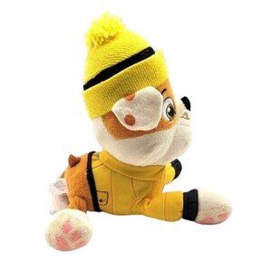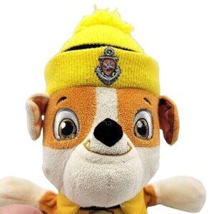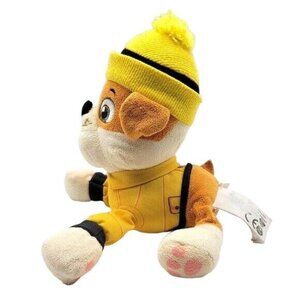 Spinmaster Paw Patrol Snow Rescue yellow Rubble dog plush stuffed animal. Pom pom hat with anchor. 2016 Beans in tush.