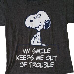 2/$15 Peanuts Snoopy Graphic T Shirt Gray XS My Smile Keeps Me Out Of Trouble