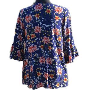 2/$15 Red Lolly Tunic Blue and Red Floral Bell Sleeves Rayon Size Small BUNDLE