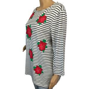 Ruby Rd. Striped Poinsettia Top, Size M.