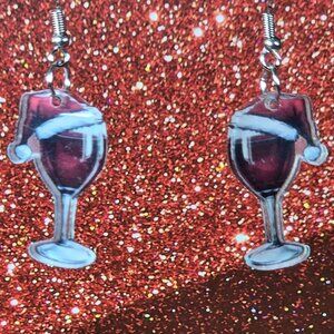 2/$15 Santa Hat Wine Glass Earrings (NWOT)