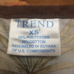 Scrubs: Beautiful Hawaiian pattern ๐บ ๐ธ๐ผ brown trim on front and brown tie string on back. 65% polyester, 35% Cotton. Size XS, 2 front pockets... EUC Bundle & $ave