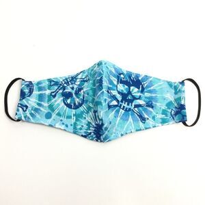 1/$10 or bundle 2/$15! Handmade 3-layer face mask (2 fabric, 1 removable filter). Blue pre-shrunk cotton fabric w/turquoise tie dyed sugar skulls. Adult Size. Nose slot has a removable pipe cleaner for snugger fit. Includes filter pocket in back. 1 "Filti fabric" filter is included & can be inserted into pocket if desired. Remove pipe cleaner & filter before washing! 7” elastic ear loops.Masks are not medical-grade. EACH MASK LOOKS DIFFERENT BASED ON PLACEMENT ON FABRIC! #halloween #skeleton #crossbone #dayofthedead