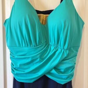💕 2/$15 Swimsuits For All Swim Dress-size 22. Built in bra with adjustable strap, padded cups, adjustable shoulder straps. Fully attached panty. Turquoise & navy blue. New without tags. Smoke free & pet free home. 💕Bundle Sale-bundle listings w/💕 emojis for 2/$15.