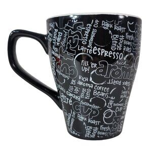 2/$15 Tara Reed Coffee Lover Mug Black White Words Espresso Blue Harbor 2014