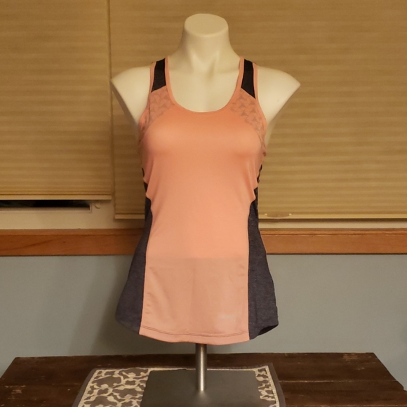 Bundle two or more items and receive an offer of $7.50 per item! Like new tank from The Running Room. A local running specialty store in my state. Moisture wicking. Peach and navy.