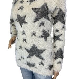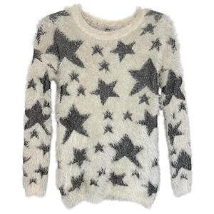 2/$15 Yoki Eyelash Star Sweater Cream Black Plush Furry Soft Pullover Size S