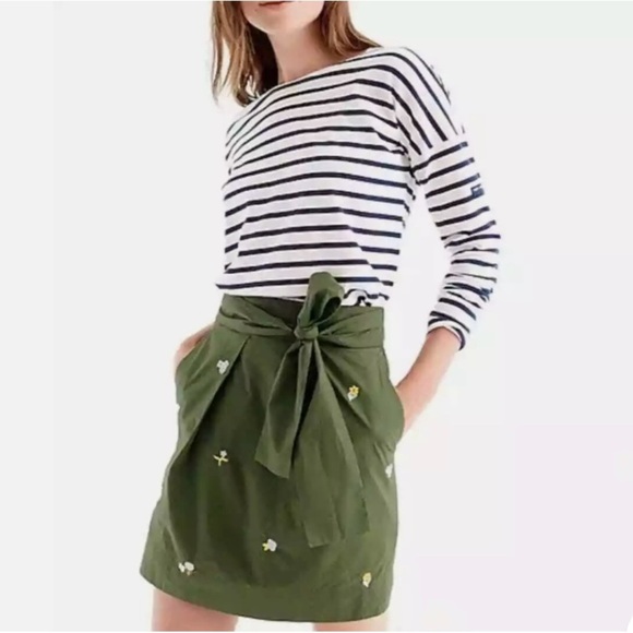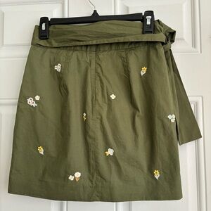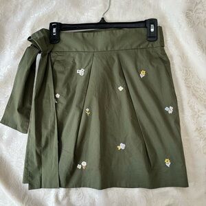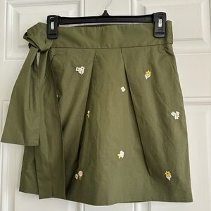 ❤️2/$15 or 3/$21❤️ J. Crew Olive Embroidered Miniskirt w/Tie Waist, Size 00