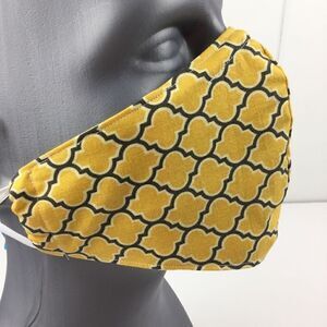 1/$10 or bundle 2/$15! Handcrafted 3-layer face mask (2 fabric, 1 removable filter). Gold pre-shrunk 100% cotton fabric w/gray & white Moroccan design. Fits an Adult. Nose slot has a removable pipe cleaner for snugger fit. Includes filter pocket in the back. 1 "Filti fabric" filter is included & you can insert it into the pocket if desired. Remove pipe cleaner & filter before washing! 7” elastic ear loops. *Masks are not medical-grade & take 1 hour to create. **EACH MASK LOOKS DIFFERENT DEPENDING ON PLACEMENT ON FABRIC. #morocco #marrakesh