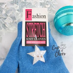 Get ready for a white Christmas with these adorable blue mittens adorned with a silver star!