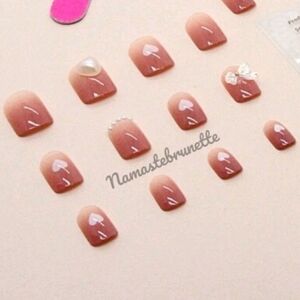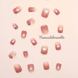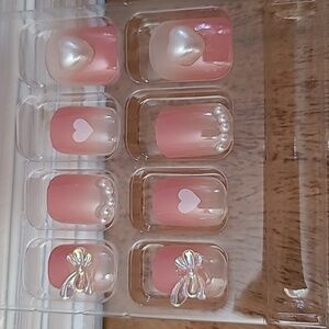 2/$16 24pcs Heart Bows Pearls Press On Nails