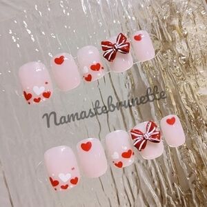 Style - 3D Bows & Valentine's Hearts Press on Nails - Red, Pink, & White.