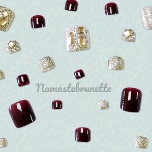 Short Nails | Rhinestone Pattern Nails | Square Nails | Fake Nails | False Nails | Press Ons | Summer Nails | Beach Nails | Gold | Manicure | Pedicure Toenails | Pedi | Wedding Nails | Burgundy Brown |