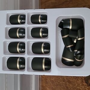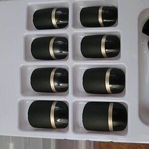 Medium Nails | Matte | Glossy | Square Nails | Fake Nails | False Nails | Press Ons | Manicure | | Mani | Artificial Nails | Stripes | Black | Gold |