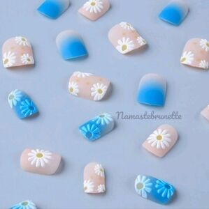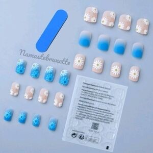 2/$16 Boho Blue Ombe Daisy Press On Nails