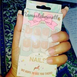 | French Manicure Pattern Nails | Square Nails | Fake Nails | False Nails | Press Ons | Summer Nails | Beach Nails | White & Pink | Manicure | Wedding | Summer | Spring |