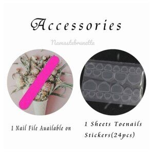 Quantity - Set of 24 nails in sizes tiny to large! This means no need to size your nails before purchase! 1 file and 1 adhesive strips.