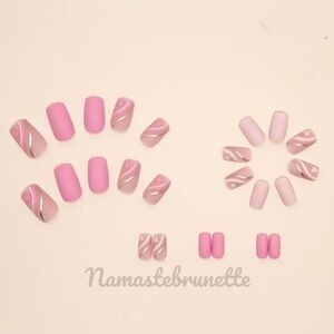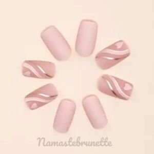 Press On Nails | Hearts Pattern Nails | Square Nails | Fake Nails | False Nails | Press Ons | Summer Nails | Beach Nails | Light Matte Pink | Manicure | Y2K | Summer | Spring | Dark Matte Pink | Gold |