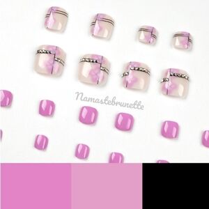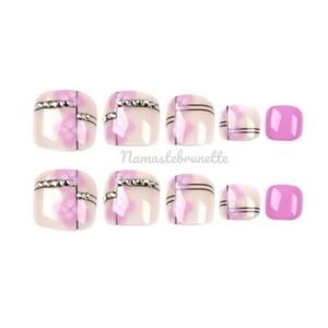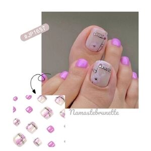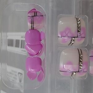 2/$16 Pink Floral Rhinestone Press on Toenails