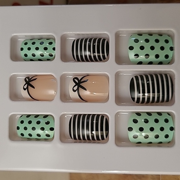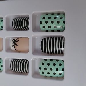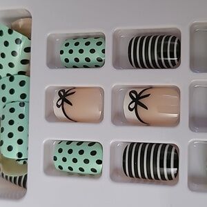 Style - Polka-dot, Stripes, Bow French Manicure Pattern Nails - Black, White, & Mint Green