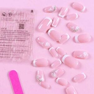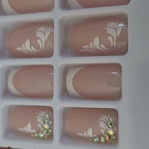 | Short Nails | Rhinestone French Manicure Pattern Nails | Square Nails | Fake Nails | False Nails | Press Ons | Vintage | Retro | Wedding |