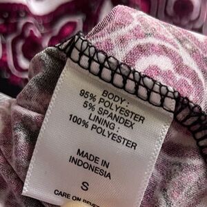 2/$16 New York & Company Black w/Burgundy Print Short Sleeve Blouse; SZ S; EUC