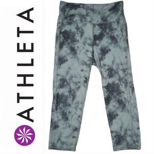❤️2/$18 Athleta Cloud Gray Green Tie Dye Print Chaturanga Tight Capri Leggings S