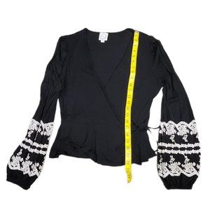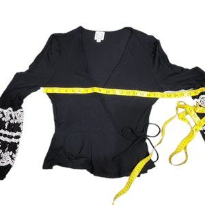 ❤️2/$18 Blue Rain Black Tie Front Warp up Cardigan Cover-Up Top S