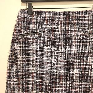 Loft Plaid Pattern Tweed Mini A-Line Skirt. Red White and Black colors. Size 8